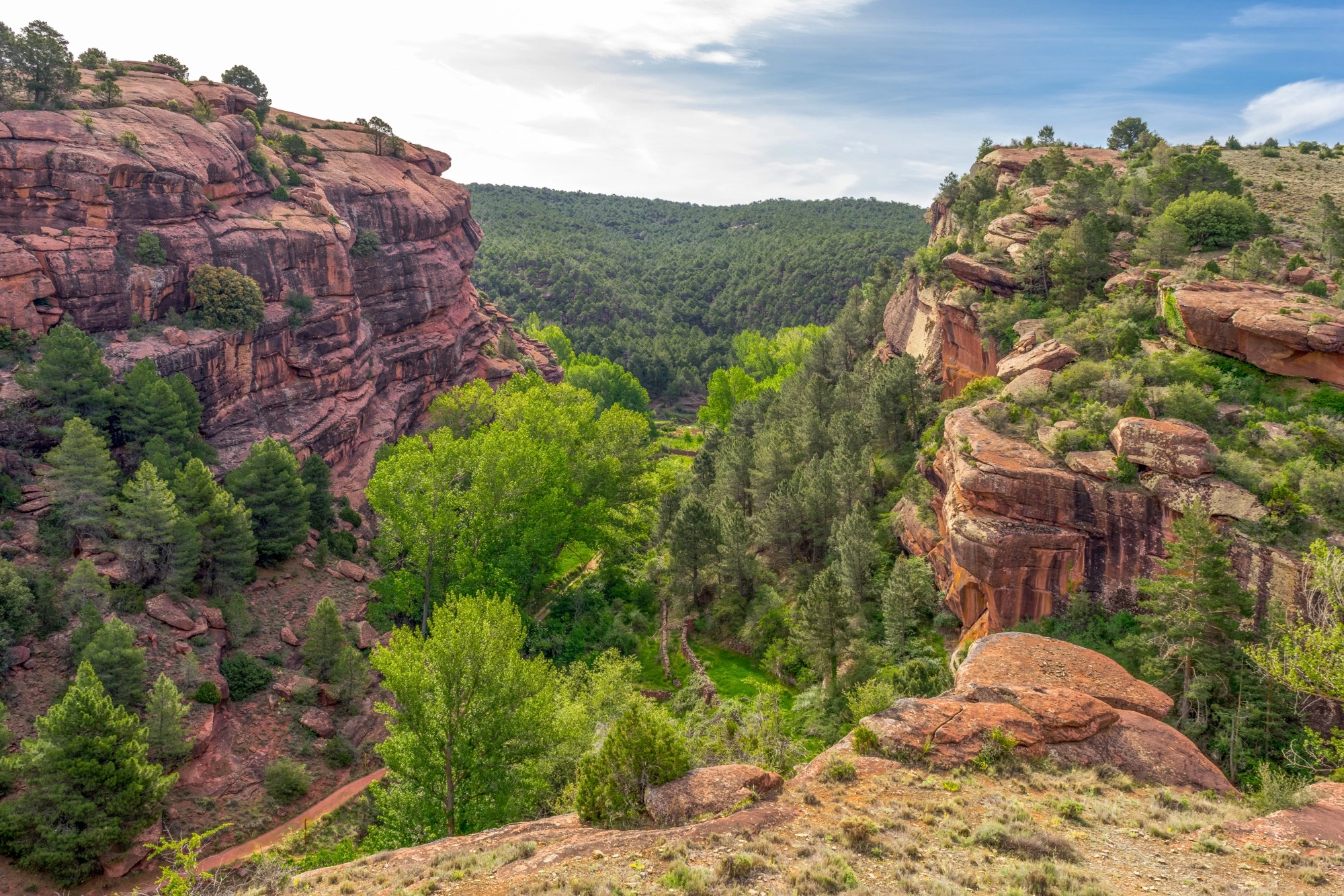 El Paisaje Protegido de los Pinares de Rodeno se extiende por los términos municipales de Albarracín, Bezas y Gea de Albarracín, en la provincia de Teruel. Con una superficie de 6.829 hectáreas, el espacio se caracteriza por un extenso pinar asentado sobre areniscas de tonalidad rojiza, un sustrato que da lugar a formas erosivas muy reconocibles y que condiciona la distribución de la vegetación.